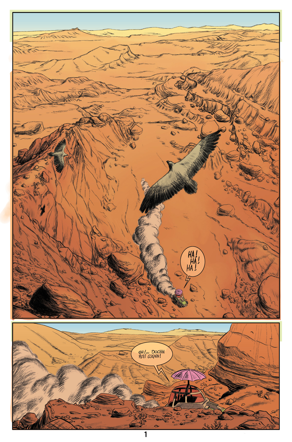 Les 5 premières pages du Canyon, une BD radioactive dessinée par David Leuba, scénarisée par moi même.